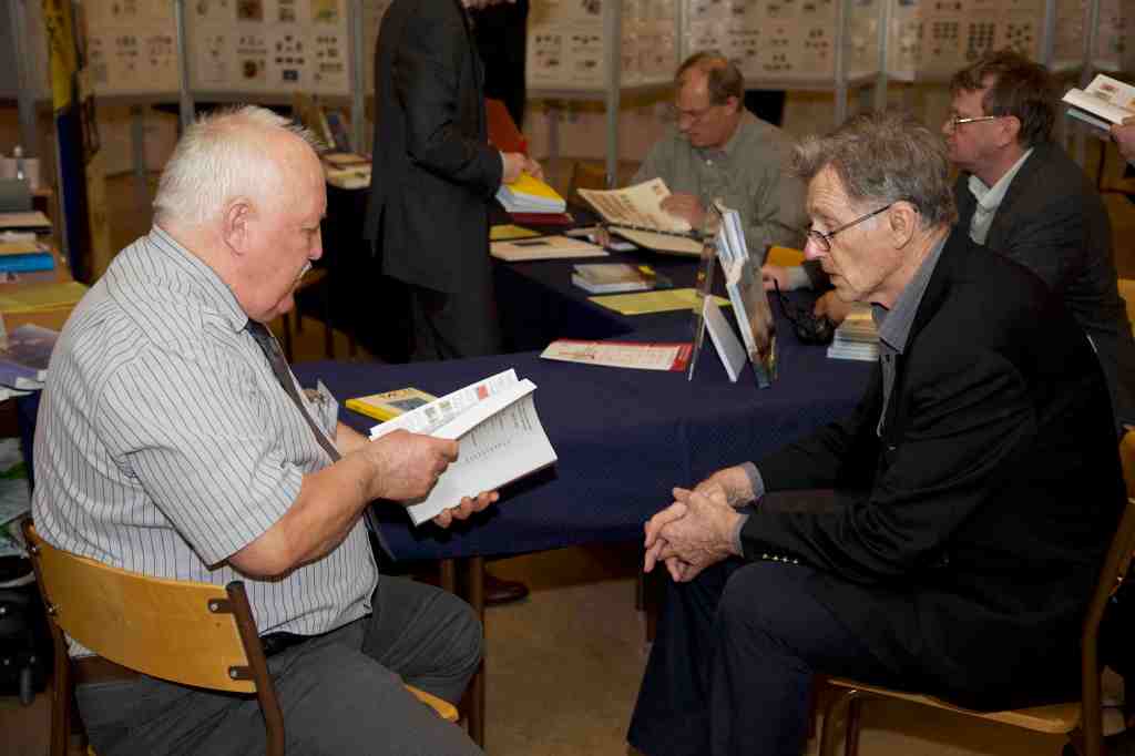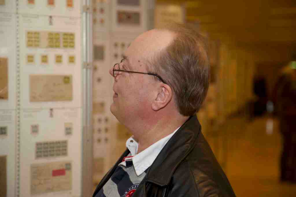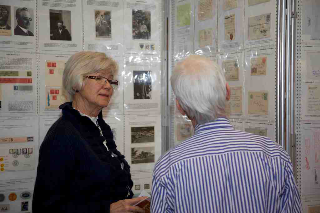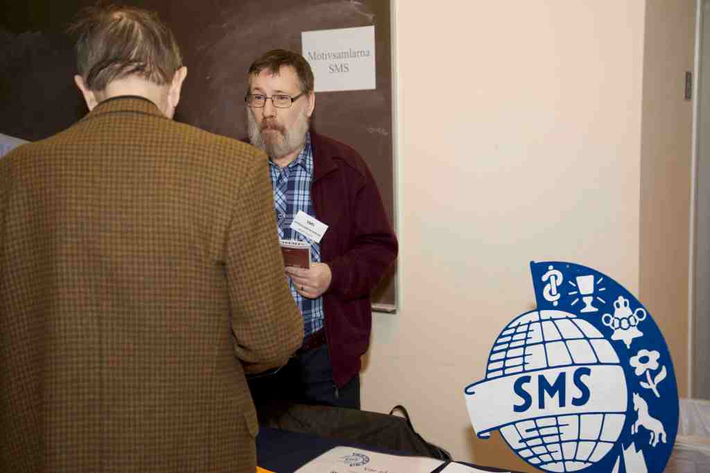 ”Då jag kom till utställningen var det redan mycket folk där – utställningen öppnade redan klockan tio. De många besökarna vandrade omkring utställningsskärmarna och även kring de försäljare och andra utställare som fanns på plats. Både svenska posten och den åländska (!) var där.